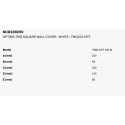 Nástěnná koncovka se vyznačuje velkou vnější přírubou s inovativním čtvercovým tvarem, předvrtanými otvory pro výstup odtokové trubky a třemi předvrtanými otvory pro montáž na zeď.